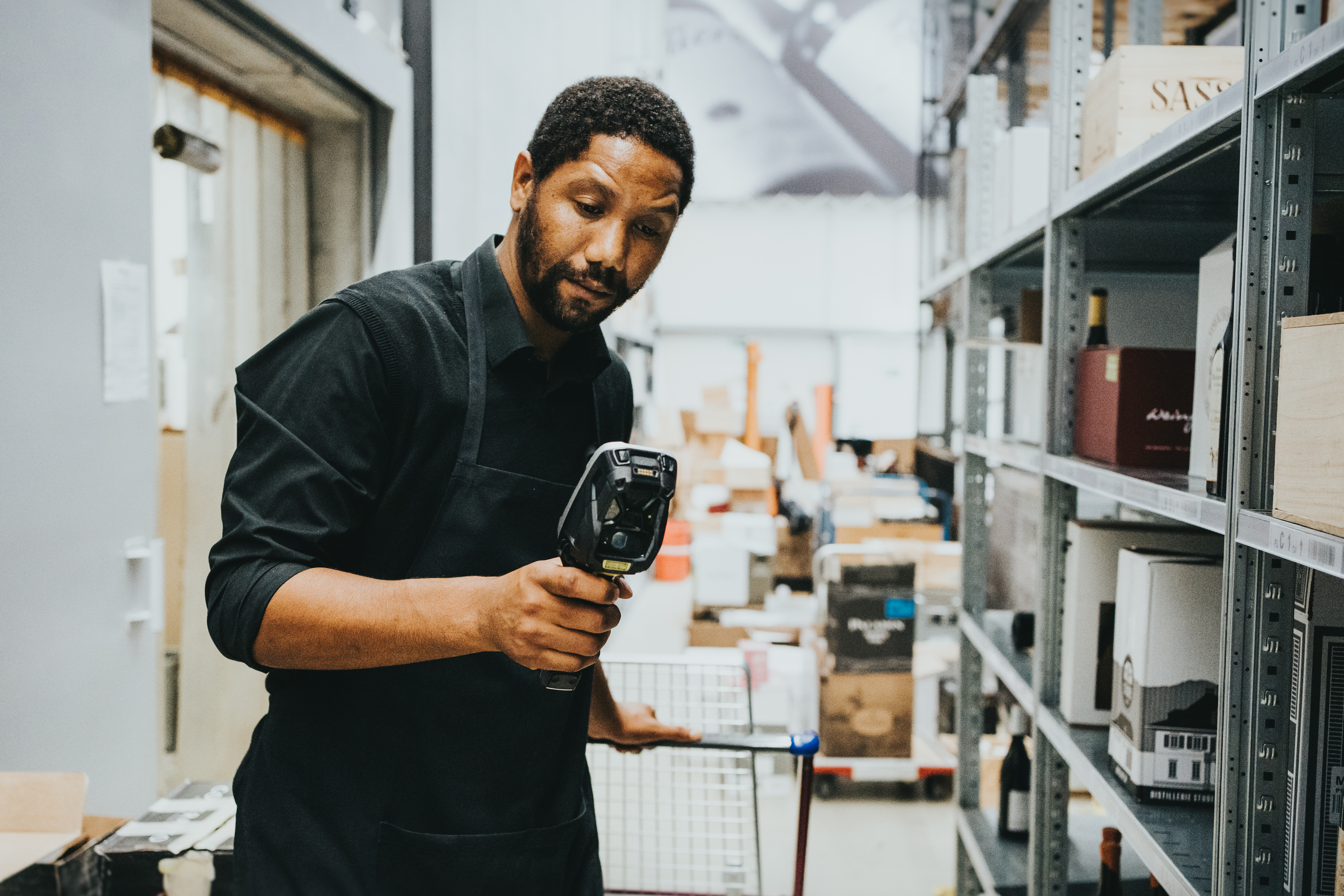 Seit 2010 setzt Baur au Lac Vins auf mobile Datenerfassung in der Lagerlogistik und in seinen Shops. Dies geschah im Zuge des Baus eines neuen Hauptsitzes in Regensdorf vor den Toren von Zürich. „Anderthalb Jahre zuvor wurde im Unternehmen SAP eingeführt. Das neue Lager war der Anlass auf Warehouse Management umzustellen. Und in dem Zusammenhang war die Einführung von mobilen Scannern ein logischer Schritt“, erinnert sich Hunziker.